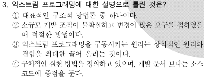 1번) XP는 구조적 방법론이 아니라, 변화에 기민하게 대응하는 애자일(Agile) 방법론의 한 종류