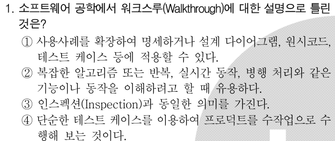 3번) 두 기법 모두 결함을 찾기 위한 '검토(Review)' 기법이라는 점은 같으나 방식이 다르다.
