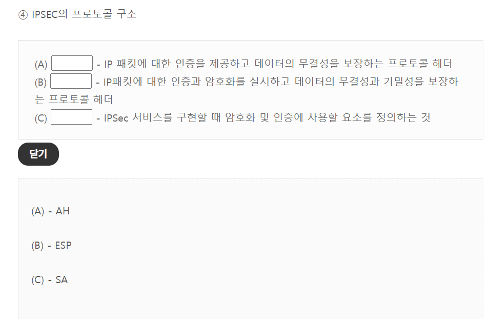 - 보기2) IPSec: 3계층(네트워크 계층)에서 동작하는 보안 프로토콜입니다.