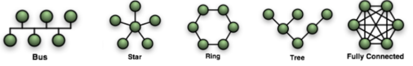 - 버스형: 한 개의 회선에 여러 단말 연결. 회선 양끝 종단장치(Terminator) 필요.